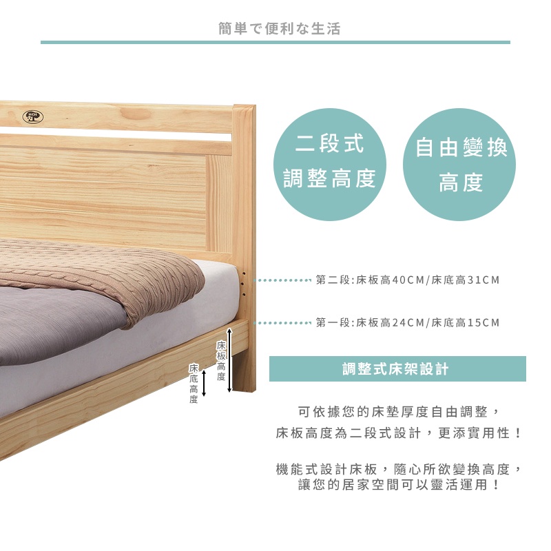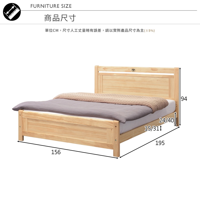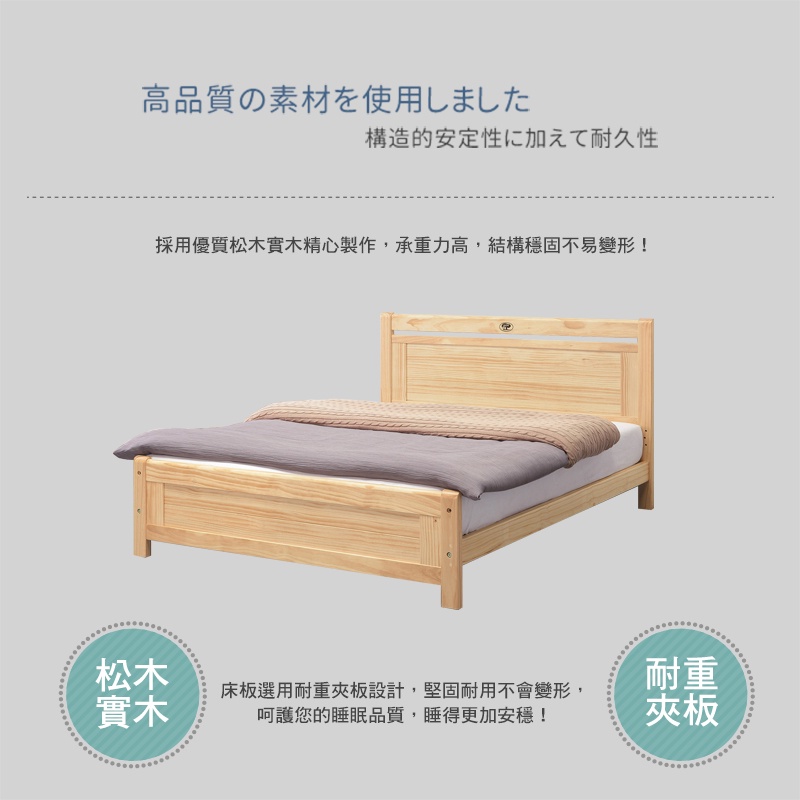 Boden-納斯托5尺雙人松木實木床架/床組(四分床板-不含床墊)