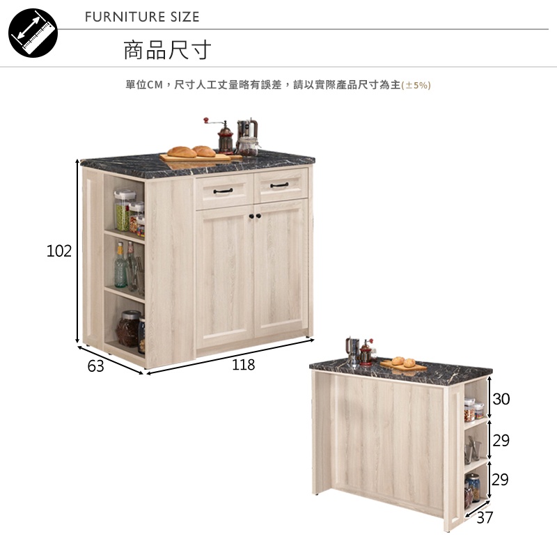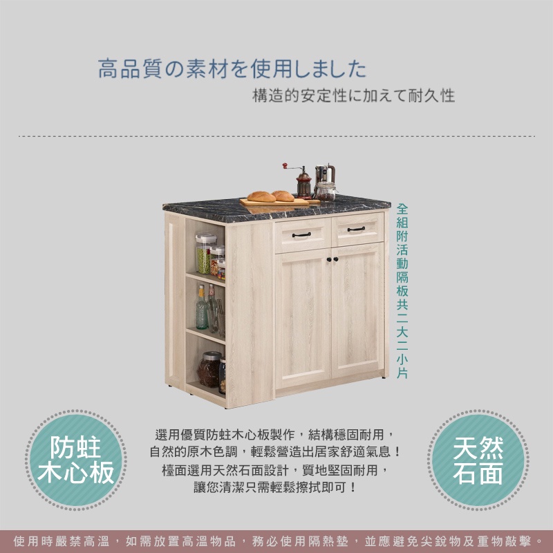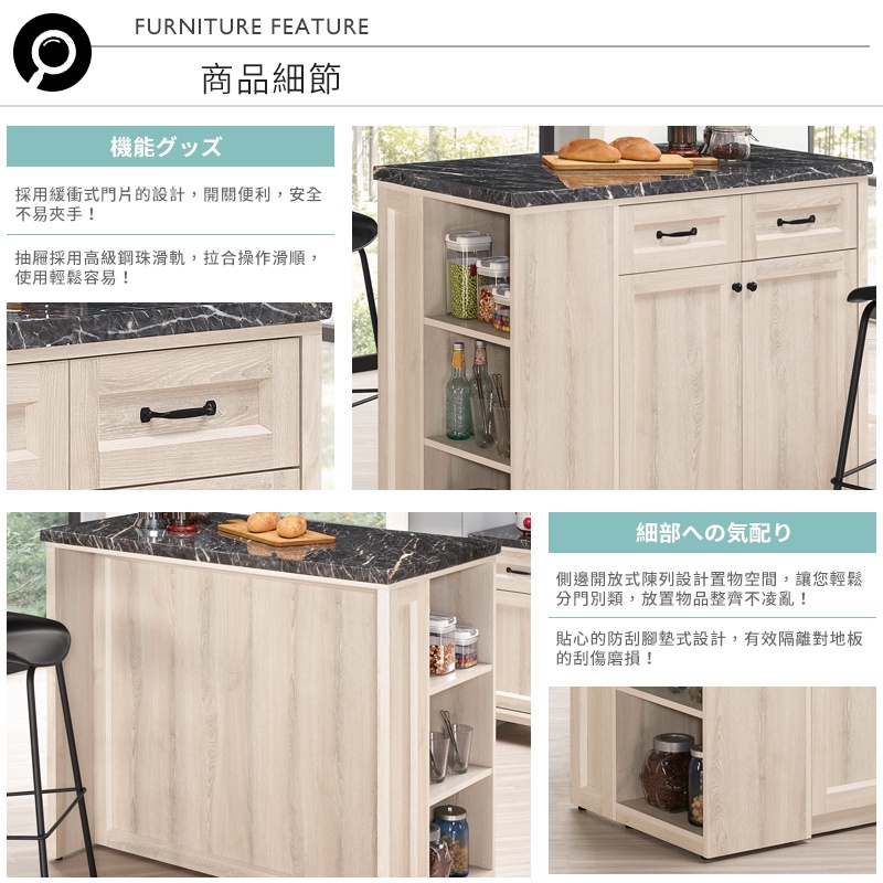 Boden-莉蒂3.9尺中島型黑色石面吧台桌+餐櫃/多功能收納餐桌櫃組合