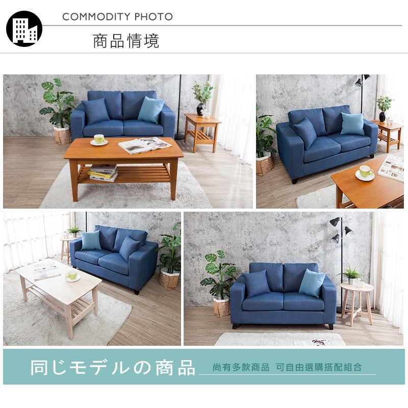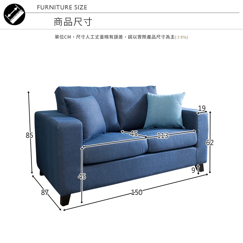 Boden-西貝藍色布沙發雙人椅/二人座(贈抱枕)