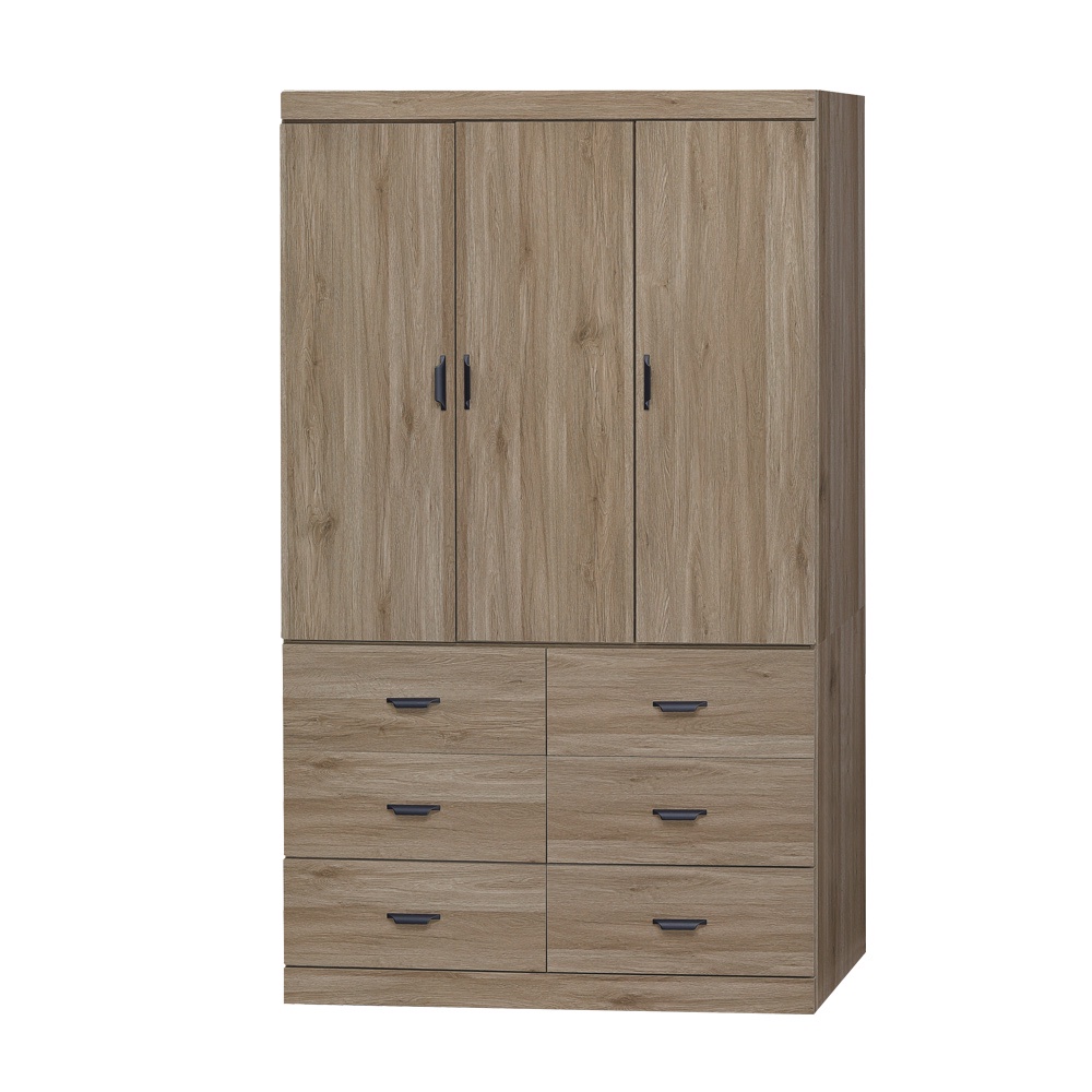 Boden-沃尼4尺三門六抽衣櫃-灰橡色