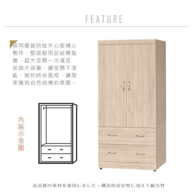 Boden-查利2.7尺二門二抽衣櫃