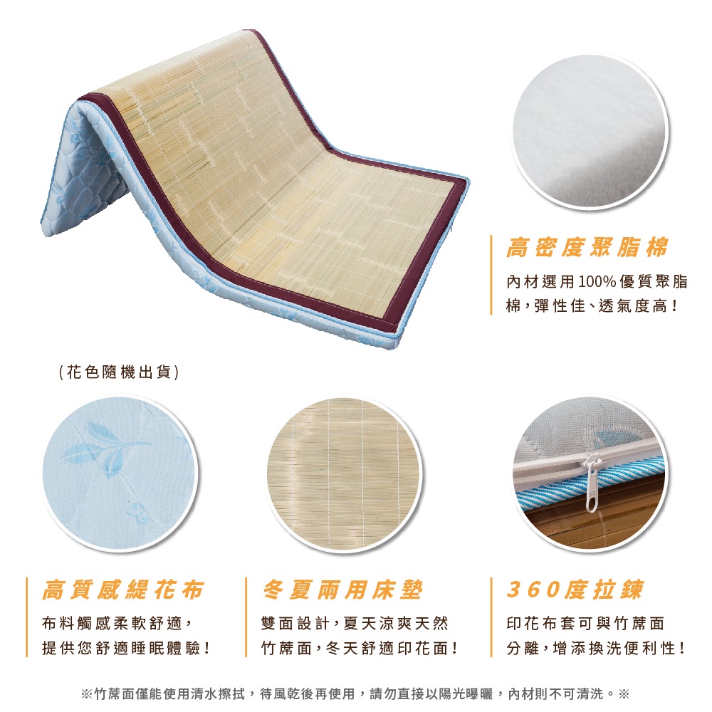 Boden-緹花布可拆洗透氣冬夏兩用竹蓆折疊式單人/雙人床墊-3.5尺/5尺