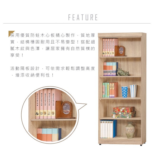 Boden-達爾思2.7尺開放式五格書櫃/收納櫃