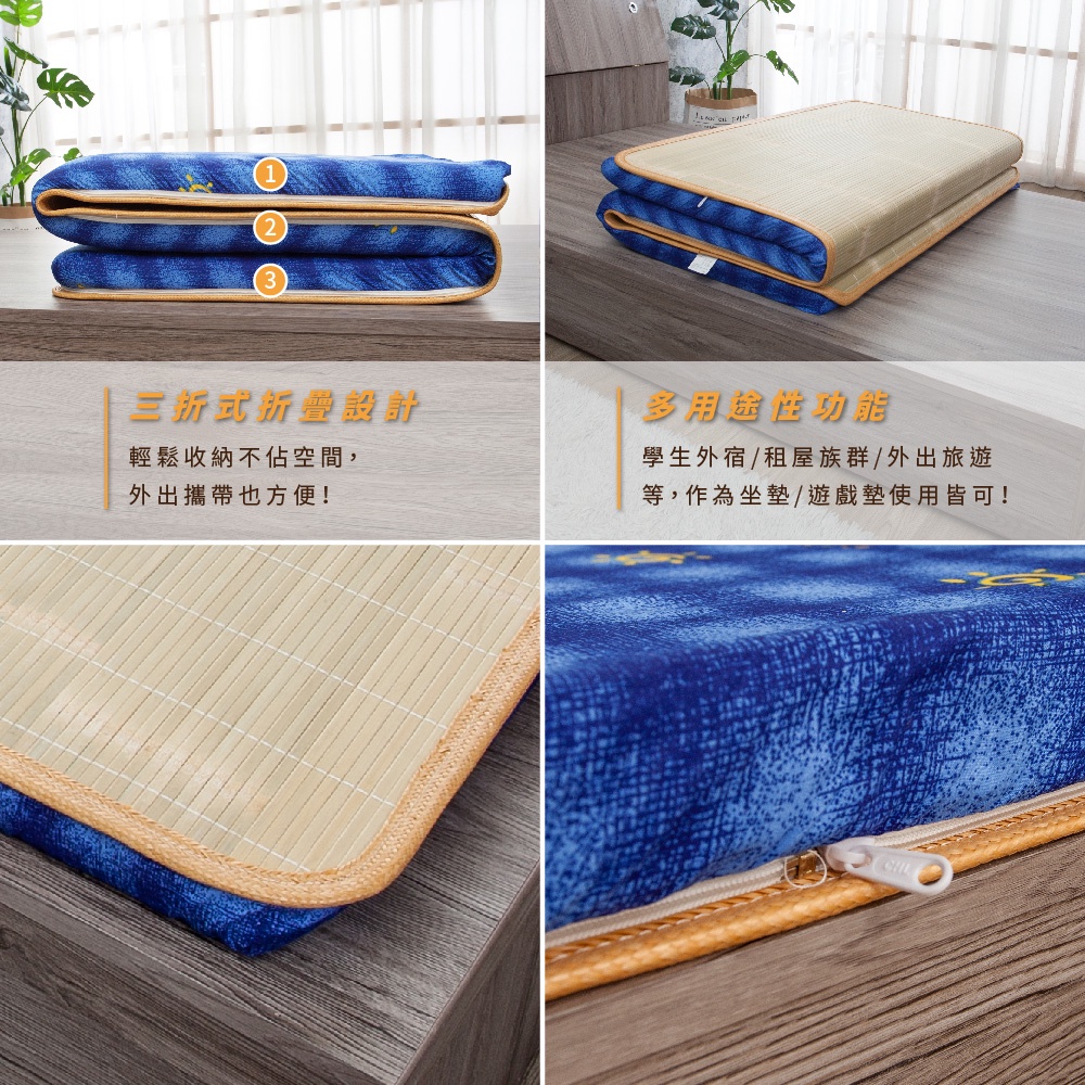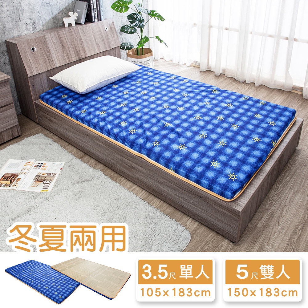 Boden-印花布可拆洗透氣冬夏兩用竹青折疊式單人/雙人床墊-3.5尺/5尺
