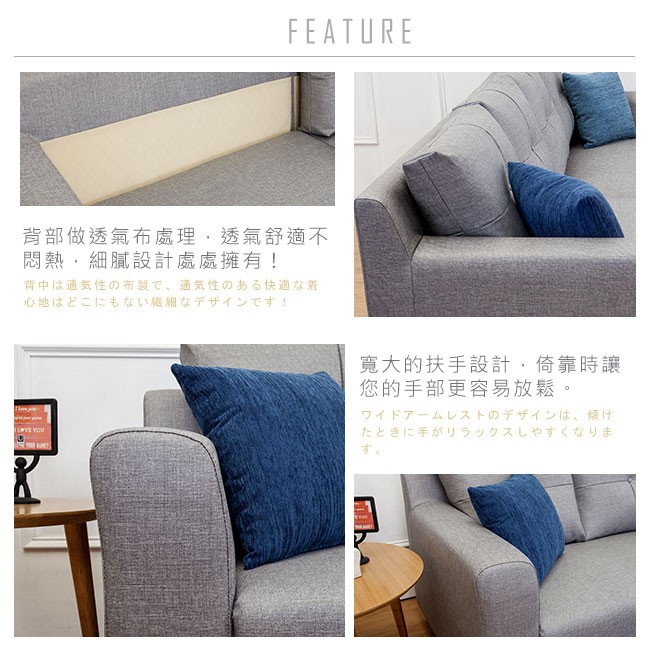 Boden-班森L型灰色貓抓布紋皮沙發(四人座+腳椅)(送抱枕)