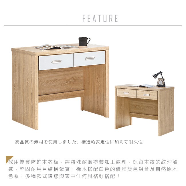 Boden-賈斯汀3尺簡約二抽書桌/工作桌(兩色可選)