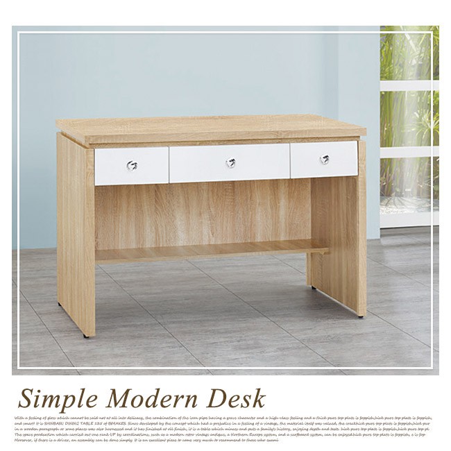 Boden-傑寶4尺簡約三抽書桌/工作桌(二色可選)