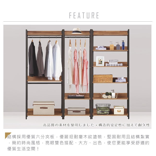 Boden-諾德7.3尺開放式組合衣櫃(雙吊+單桿+多層收納)