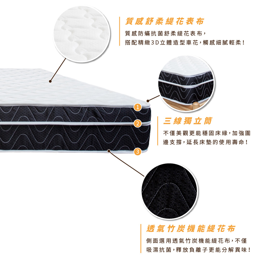 Boden-A9 伊萊爾 3D透氣竹炭護背三線硬式獨立筒單人/雙人床墊-3.5尺/5尺