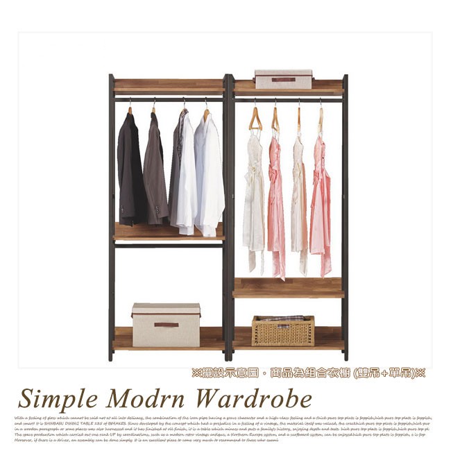 Boden-諾德5.3尺開放式組合衣櫃(雙吊+單桿)