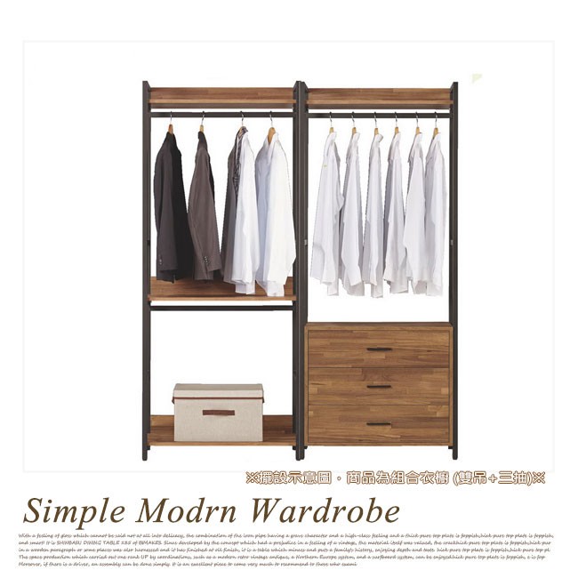 Boden-諾德5.3尺開放式組合衣櫃(雙吊+三抽)