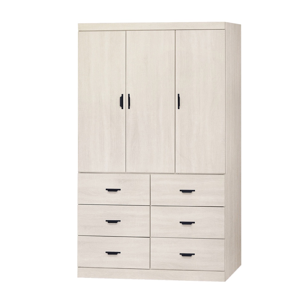 Boden-沃尼4尺三門六抽衣櫃-洗白色