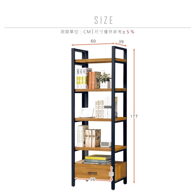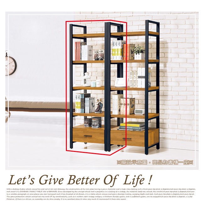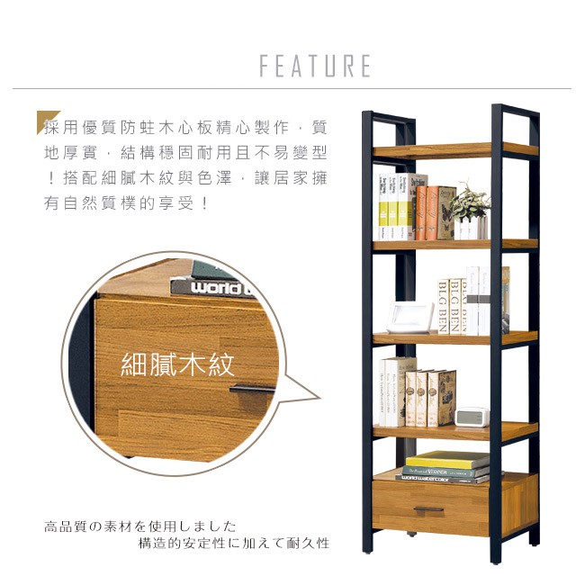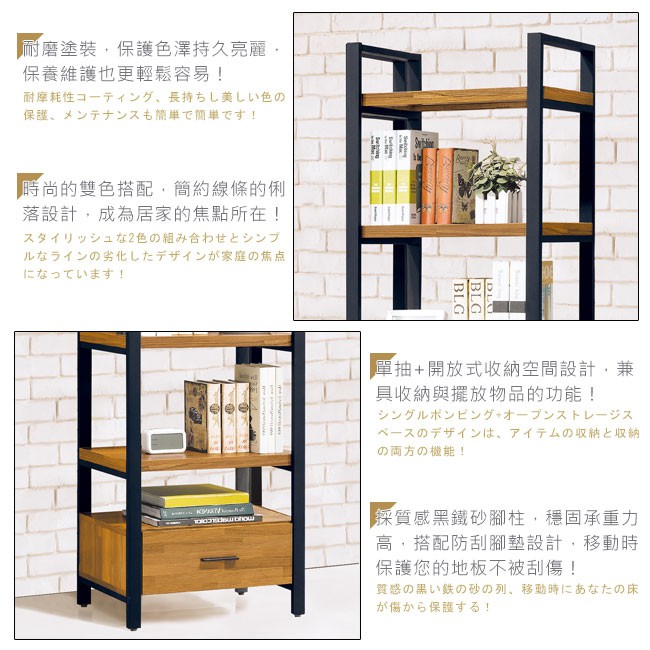Boden-斯克2尺工業風開放式單抽書架/收納架