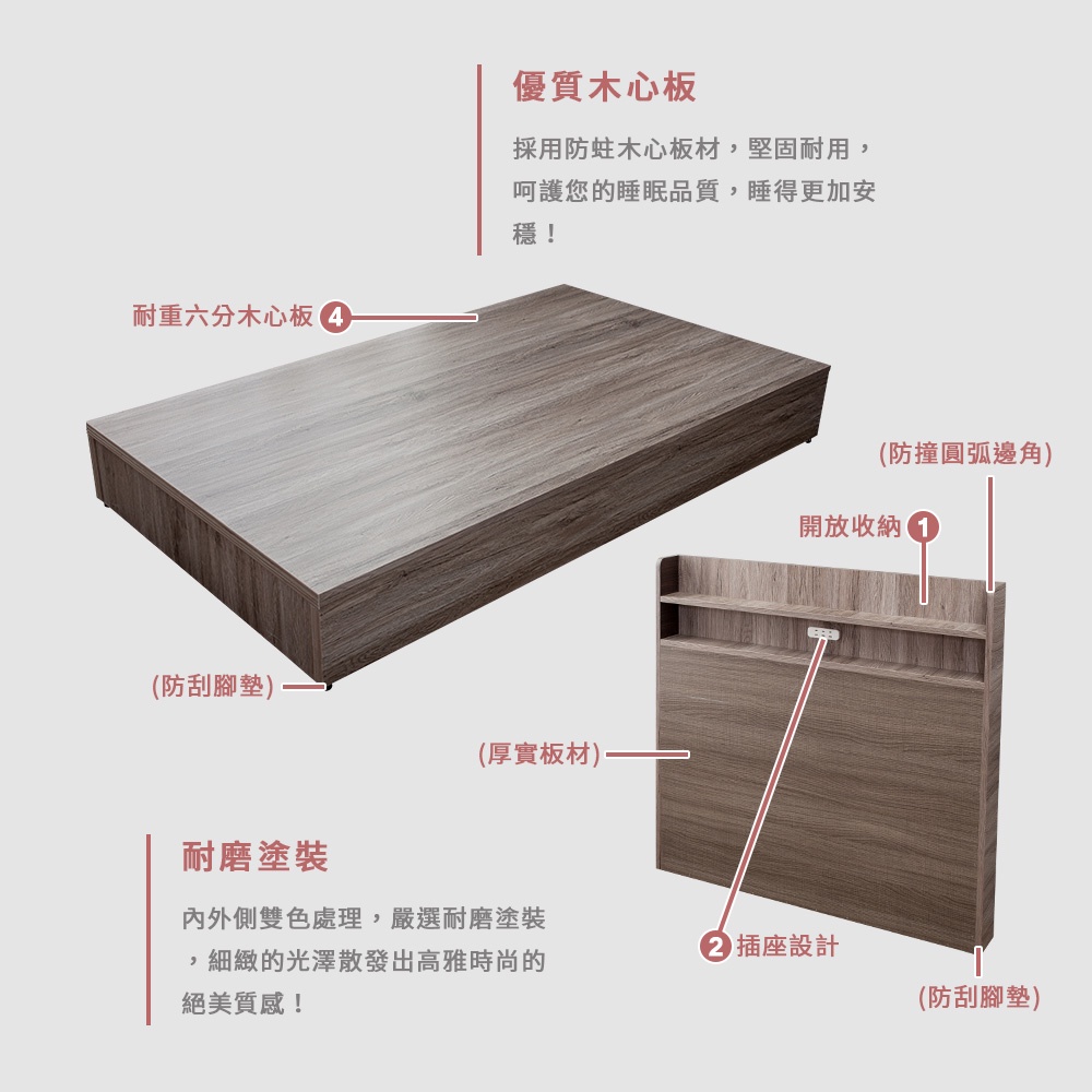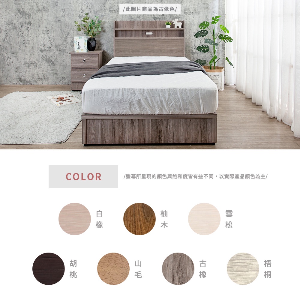 Boden-米恩3.5尺單人床房間組-3件組-附插座床頭片+六分床底+A1舒柔緹花床墊(六色可選)