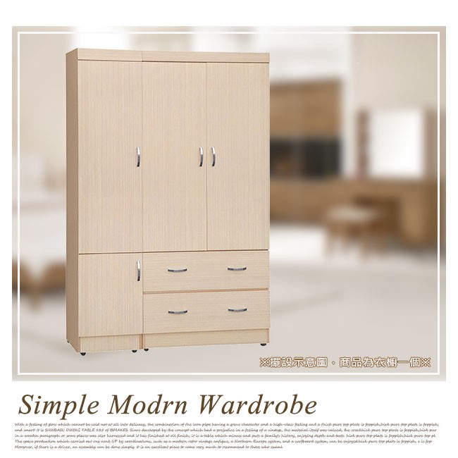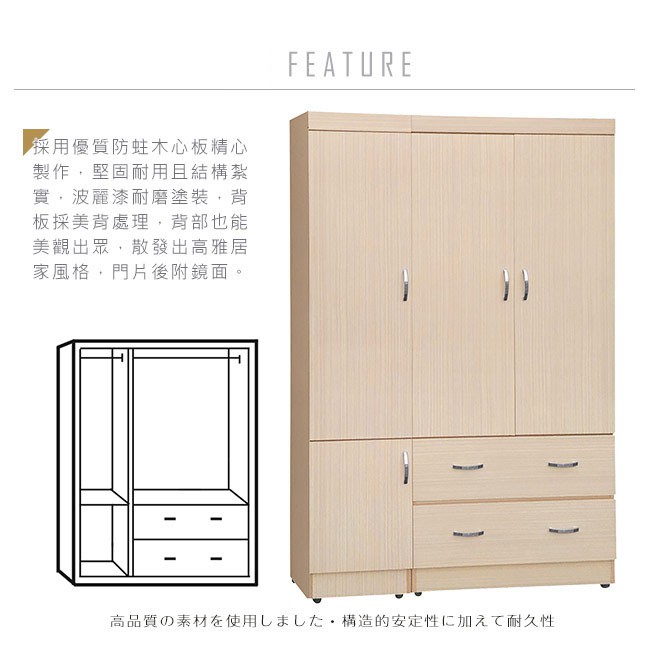 Boden-卡米4尺四門二抽衣櫃