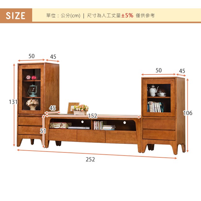 Boden-森克8.4尺全實木收納電視櫃組合(柚木色)