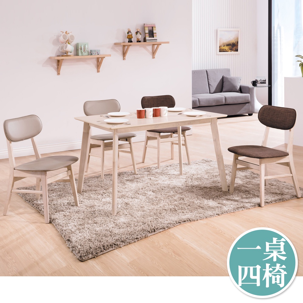 (桌)洗白色+(椅)淺咖啡色/乳膠皮
