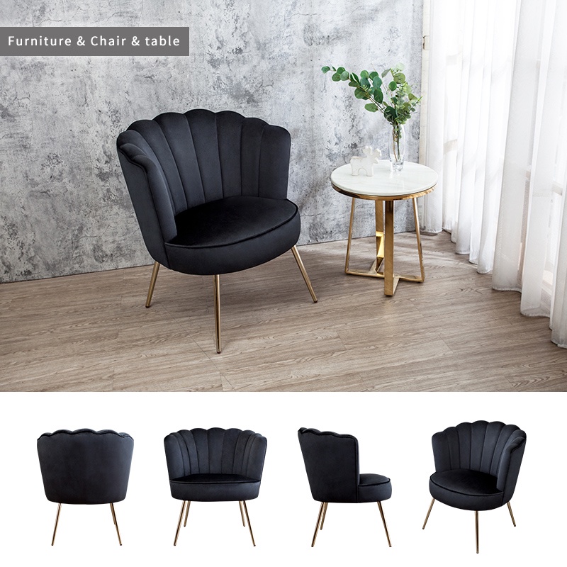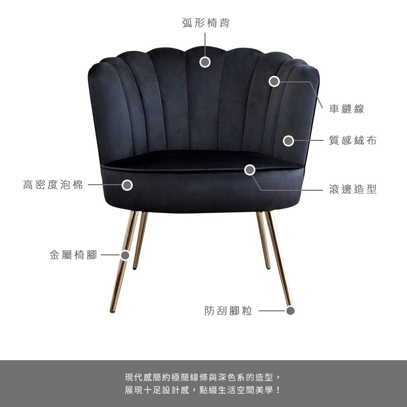 Boden-托倫貝殼造型黑色絨布單人休閒椅/沙發椅/洽談餐椅