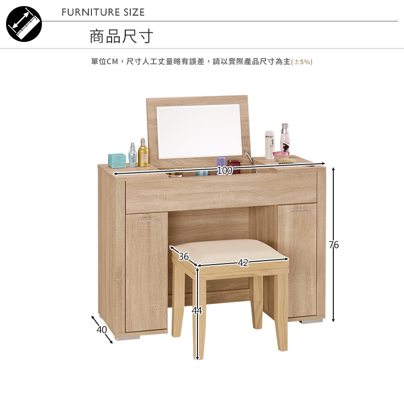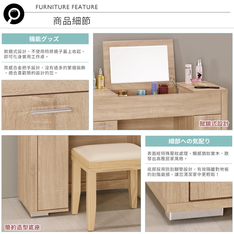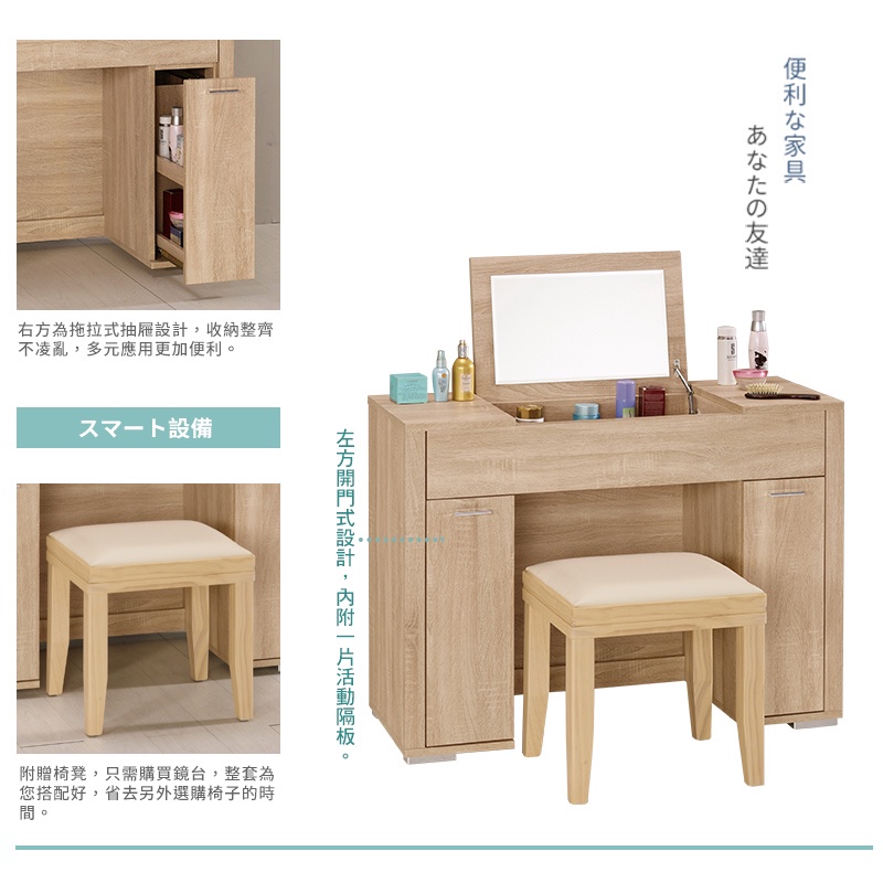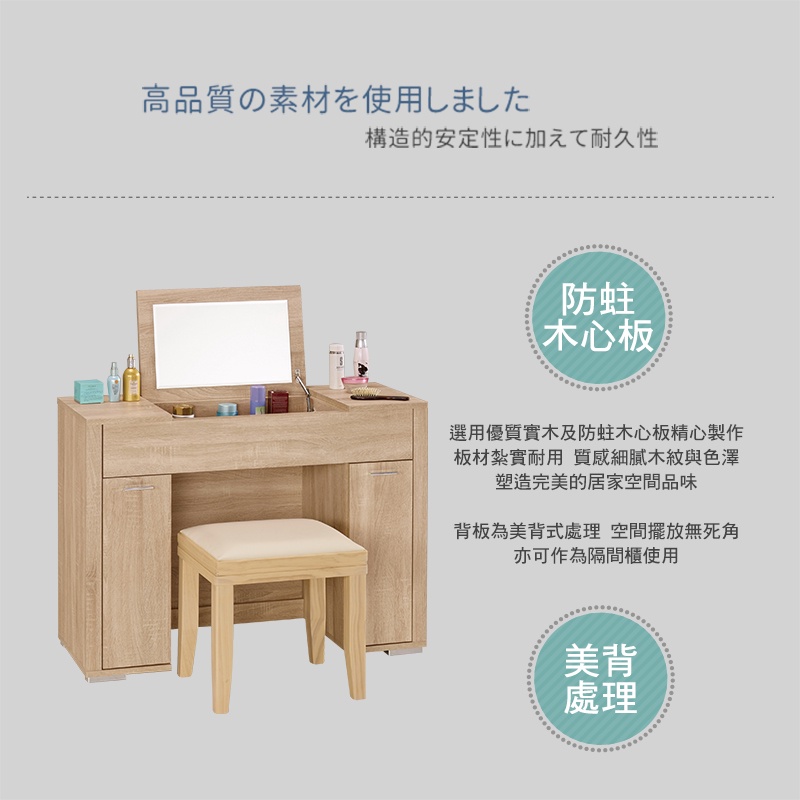 Boden-裴拉3.3尺掀蓋式化妝台/掀鏡台/化妝桌(贈化妝椅)