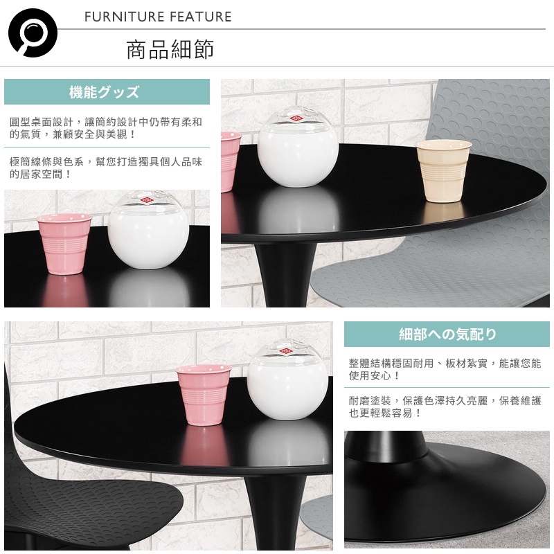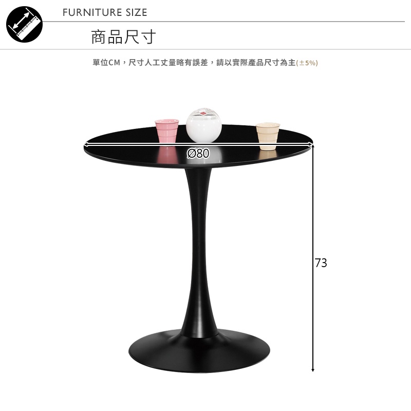Boden-愛莎2.7尺黑色圓型休閒餐桌/洽談桌/小圓桌