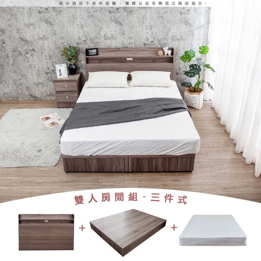 Boden-米恩5尺雙人床房間組-3件組-附插座床頭片+六分床底+A1舒柔緹花床墊(六色可選)