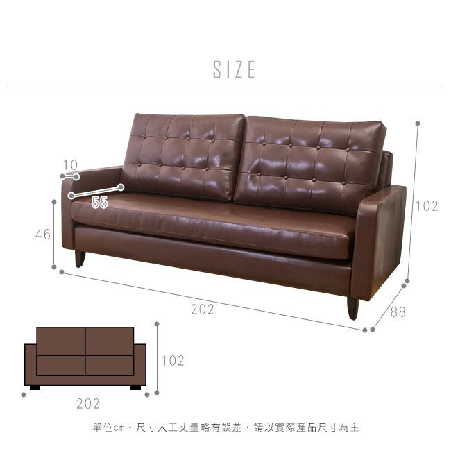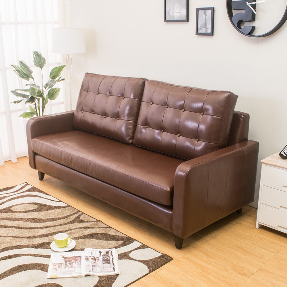 Boden-雷尼時尚復古咖啡色皮沙發三人椅/三人座