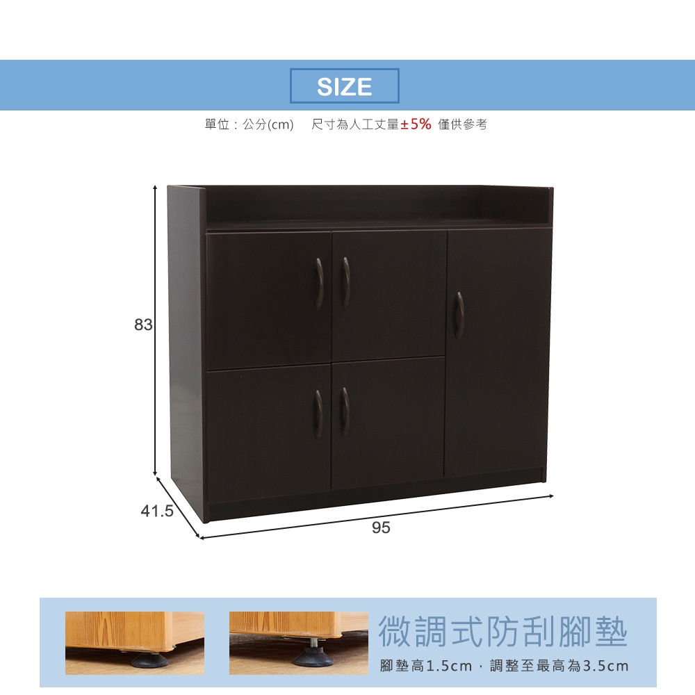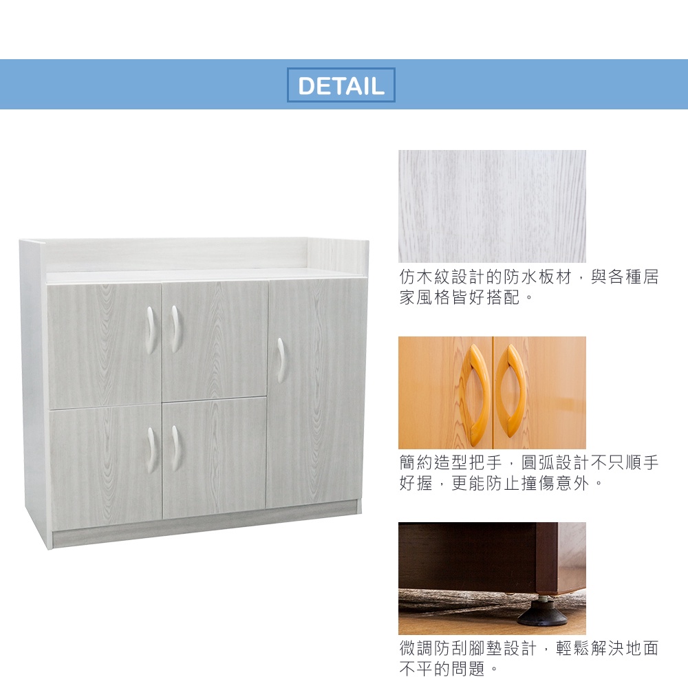 Boden-3.2尺五門防水塑鋼多功能收納櫃/置物櫃(四色可選)