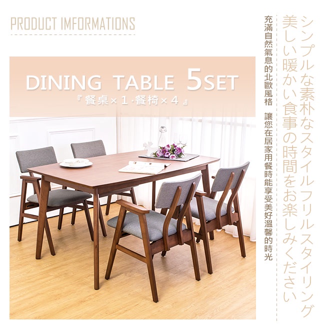 Boden-伊娃實木餐桌椅組(一桌四椅)