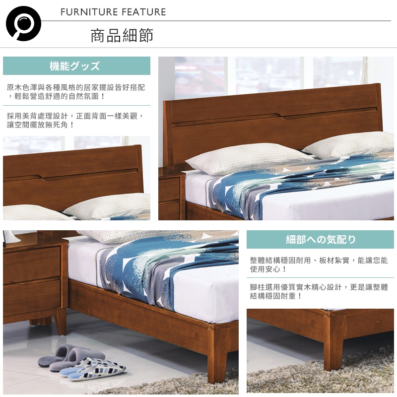 Boden-明娜6尺雙人加大胡桃色實木床架/床組(不含床墊)