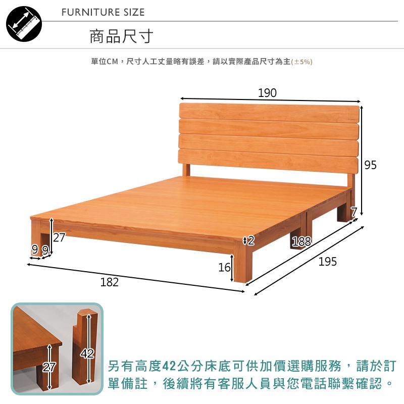 Boden-奧納斯6尺雙人加大原木色實木床組/床架(床頭片+床底)