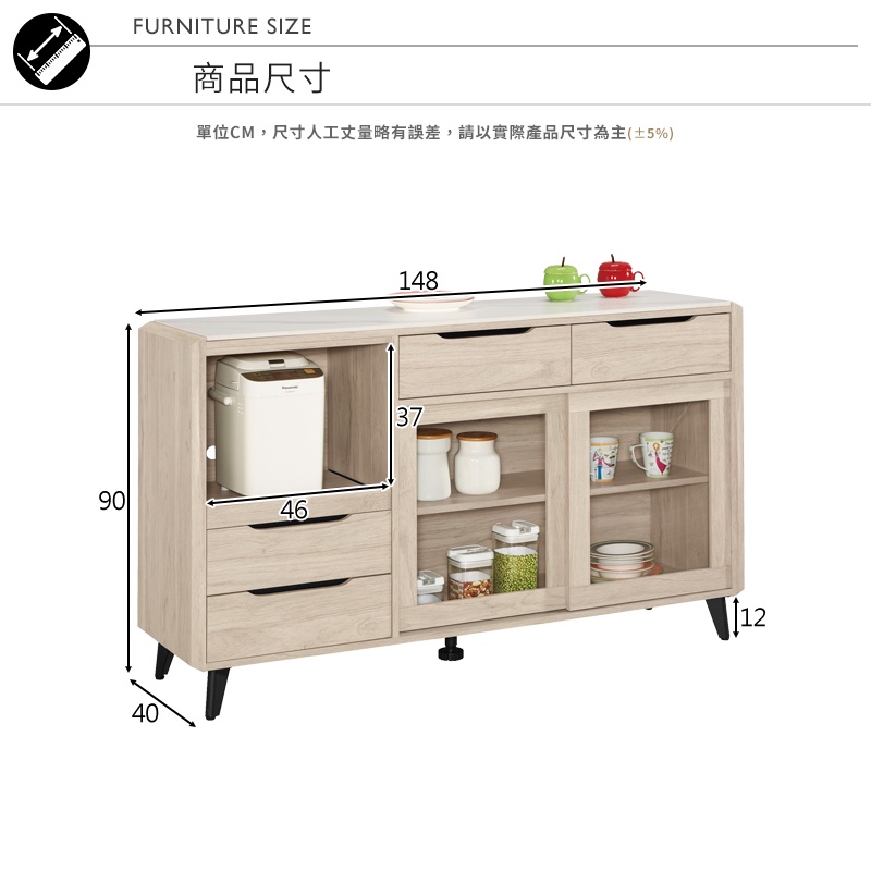 Boden-波恩4.9尺岩板滑門/推門收納餐櫃/碗盤櫃/拉盤電器櫃/置物矮櫃