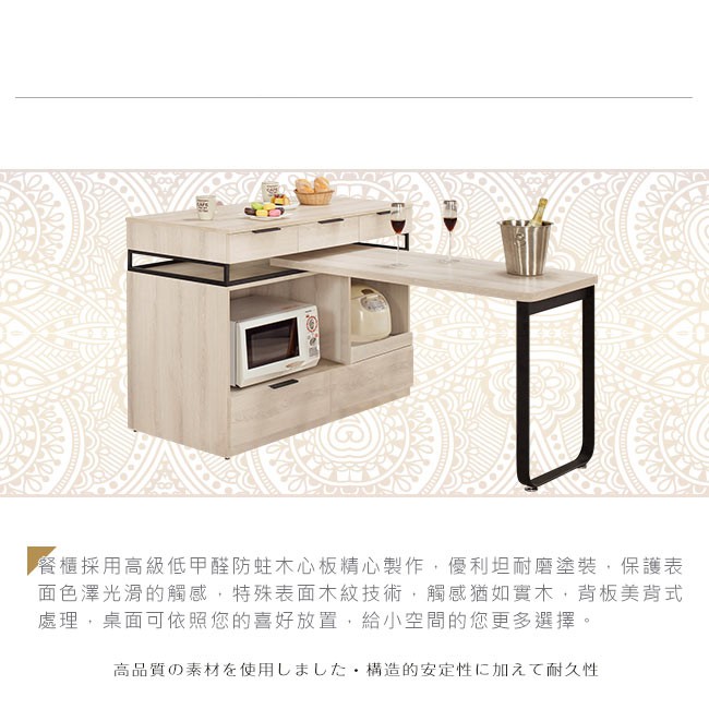 Boden-諾文4尺中島型多功能餐桌/餐櫃