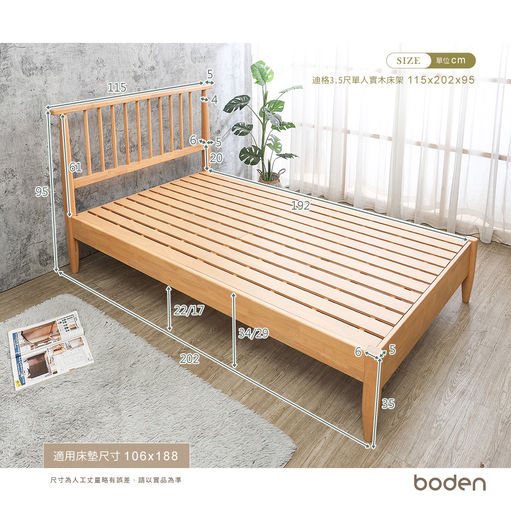 Boden-迪格3.5尺單人實木床架/床組(橡木色)