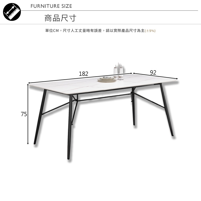 Boden-柏倫6尺工業風白色岩板餐桌/工作桌/長桌/會議桌