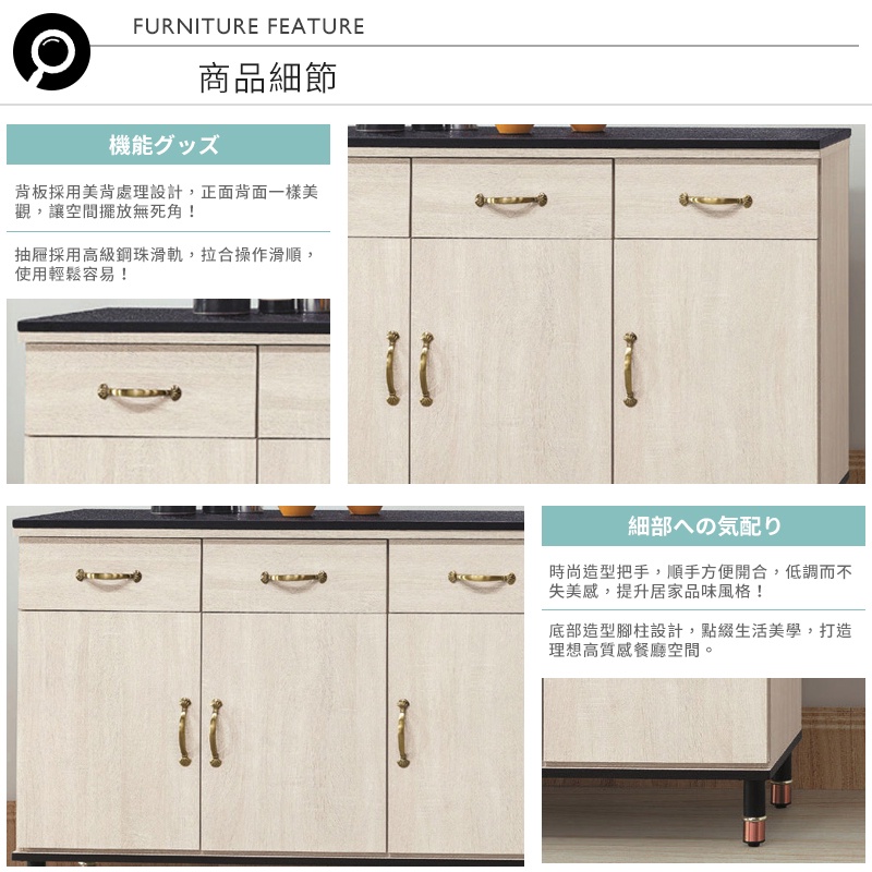 Boden-西菲4尺黑色石面收納餐櫃/碗盤櫃/置物矮櫃(下座)