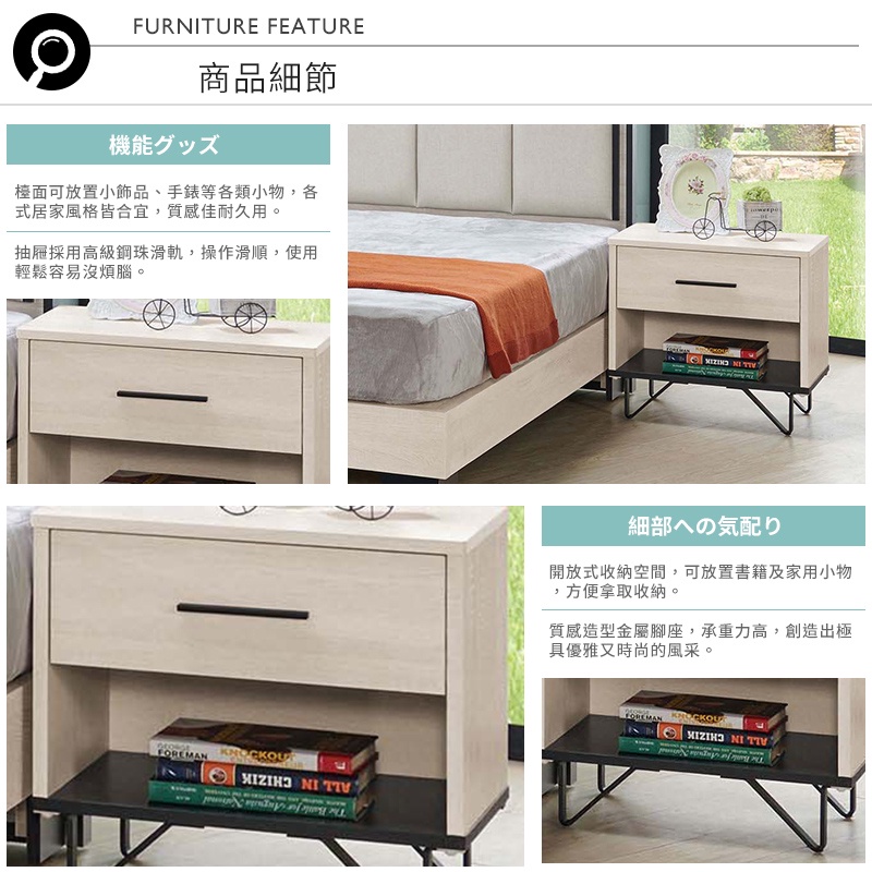 Boden-曼珊1.7尺床頭櫃/單抽開放格收納櫃/置物櫃