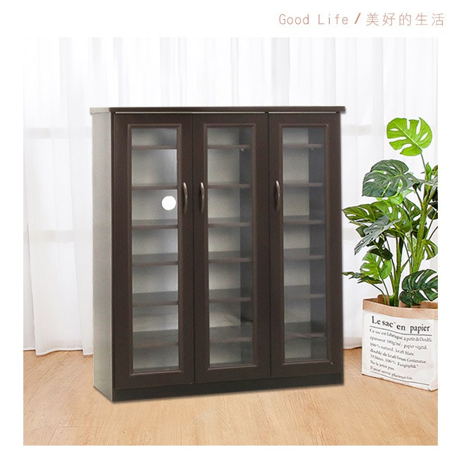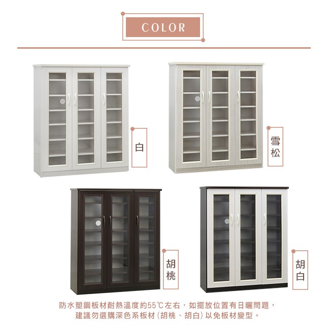 Boden-防潮防蛀 防水塑鋼3.2尺三門透視鞋櫃(四色可選)