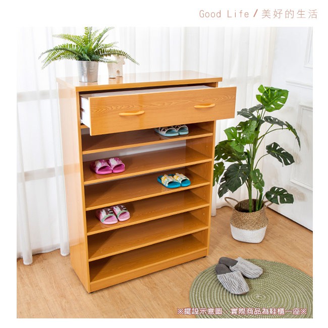 Boden-防潮防蛀 防水塑鋼2.8尺單抽開放式鞋櫃(木紋)