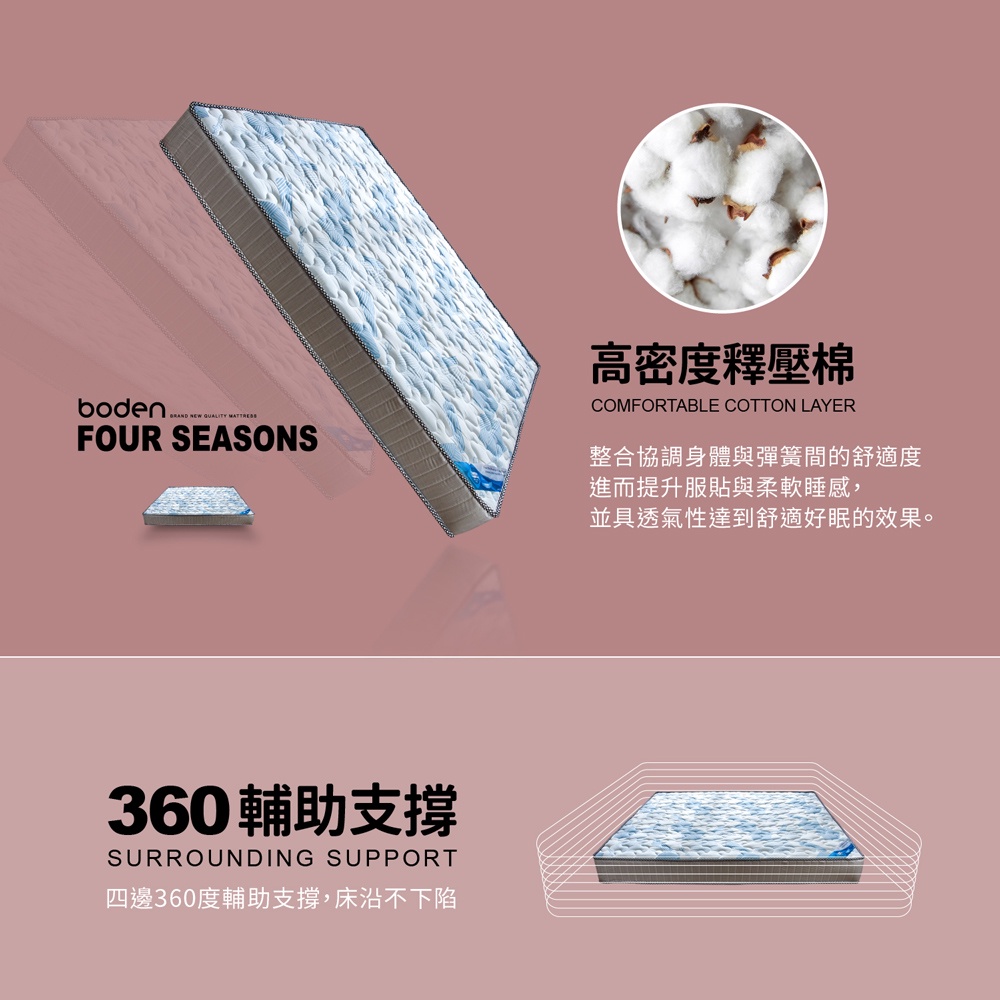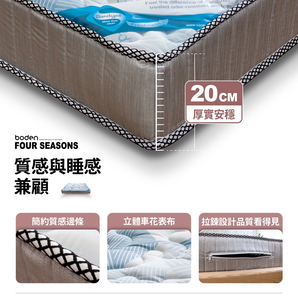 Boden-極致 瑞士Sanitized兩用涼蓆護背型3.0硬式連結式彈簧單人/雙人床墊-3.5尺/5尺/6尺