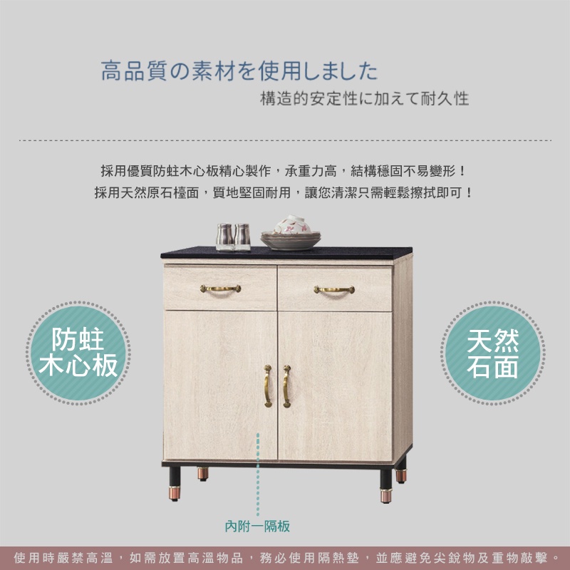 Boden-西菲2.7尺黑色石面收納餐櫃/碗盤櫃/置物矮櫃(下座)