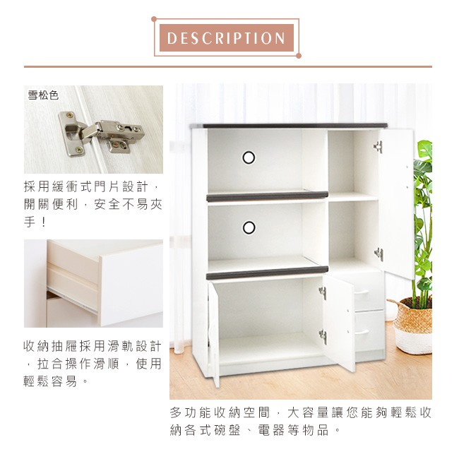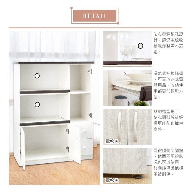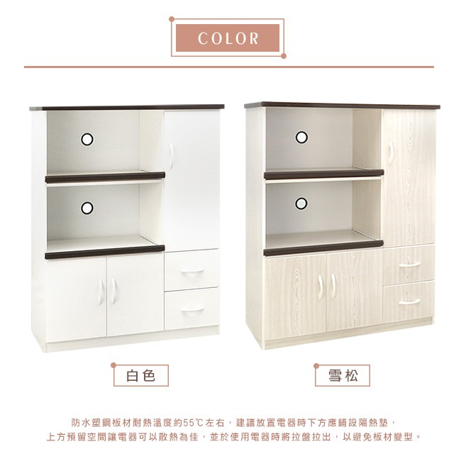 Boden-3.2尺三門二抽二拉盤防水塑鋼電器櫃/收納餐櫃(兩色可選)