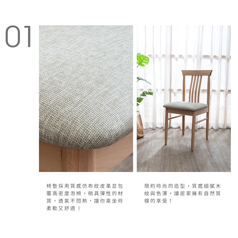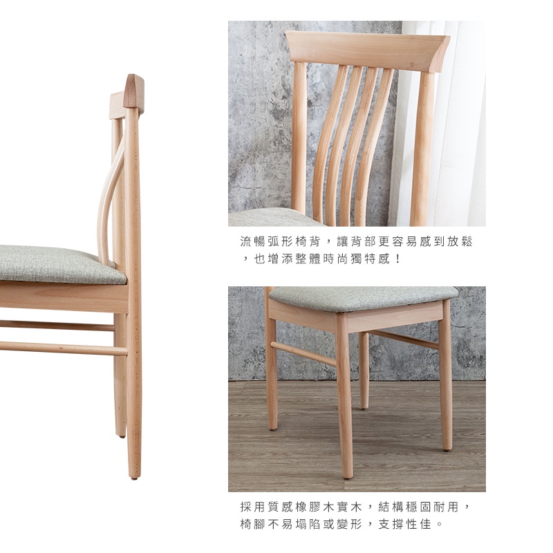 Boden-瓦薩淺灰色布紋皮革實木餐椅/單椅-洗白色