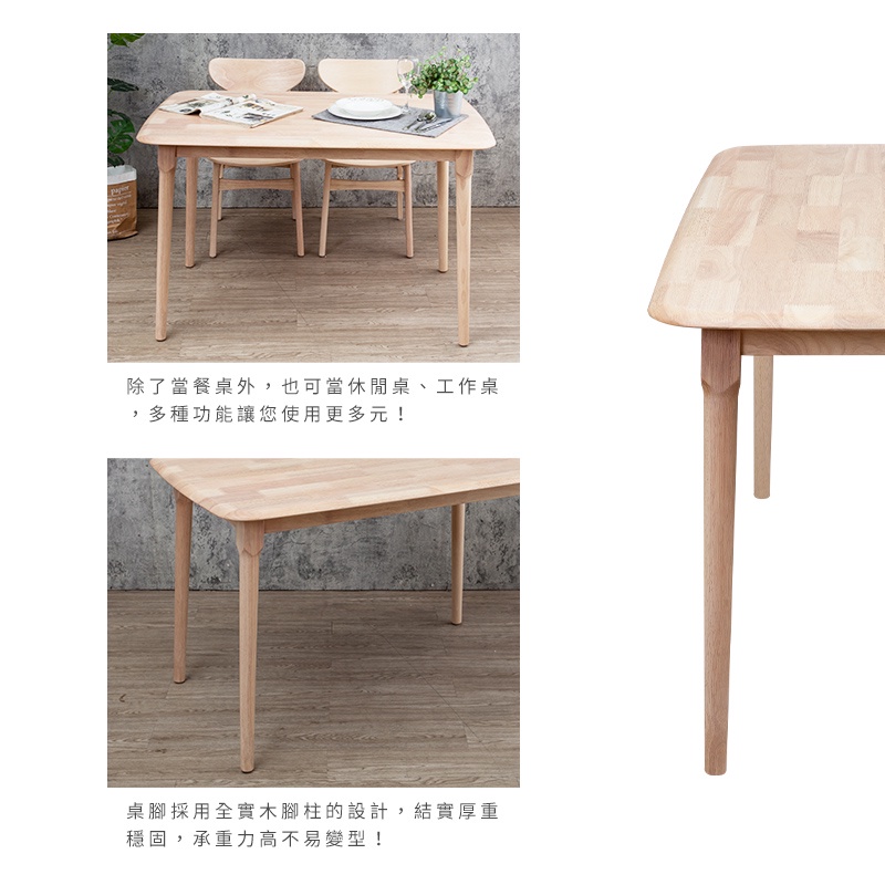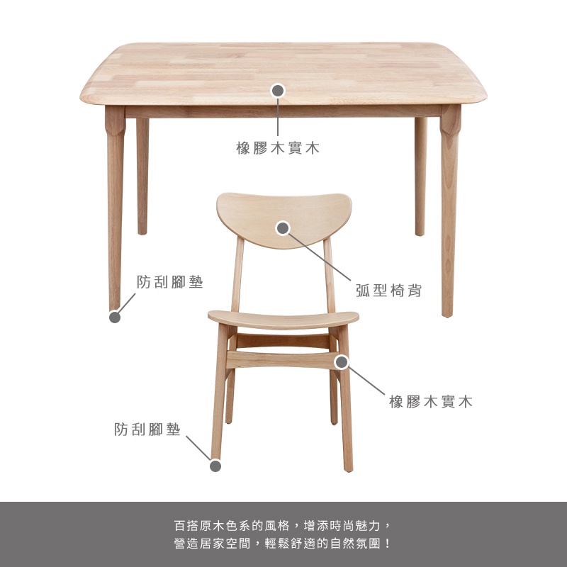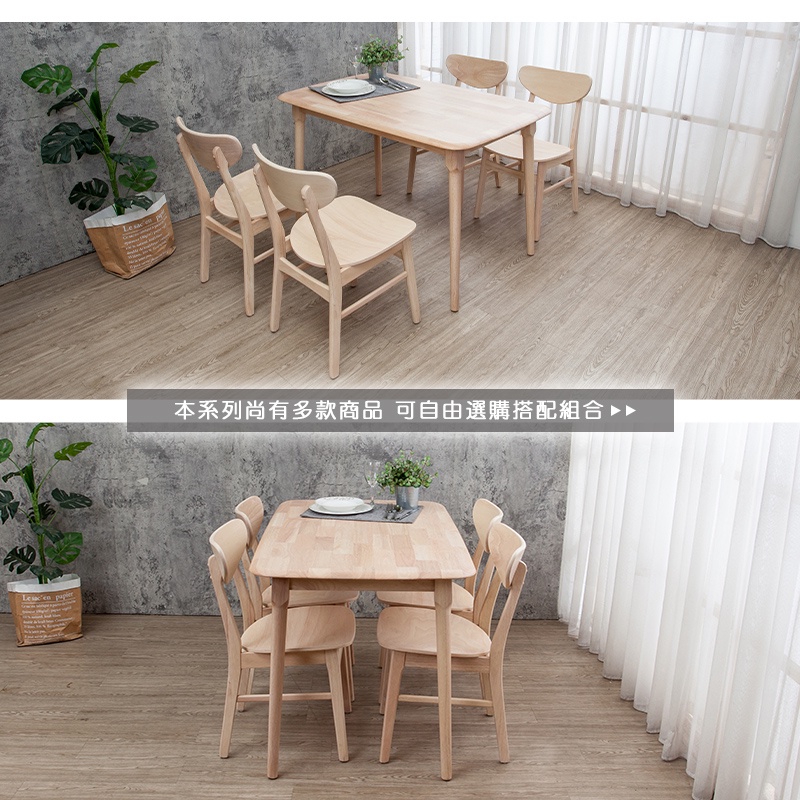 Boden-馬恩4尺實木餐桌+塔西實木餐椅組合-鄉村木紋色(一桌四椅)