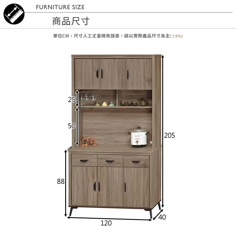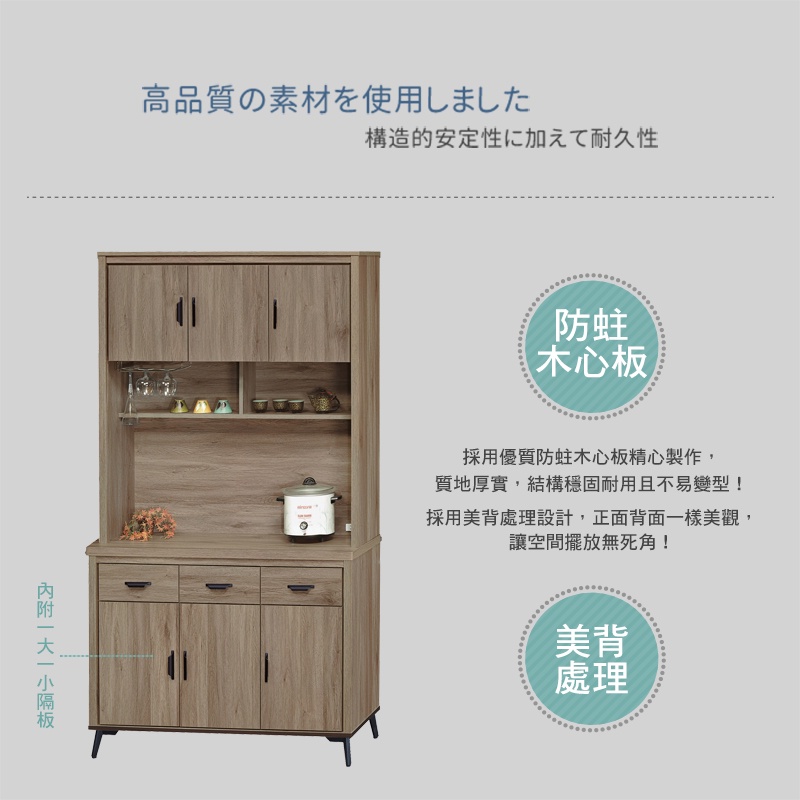 Boden-瓦登4尺工業風灰橡色收納高餐櫃/碗盤櫃/電器櫃(上座+下座)