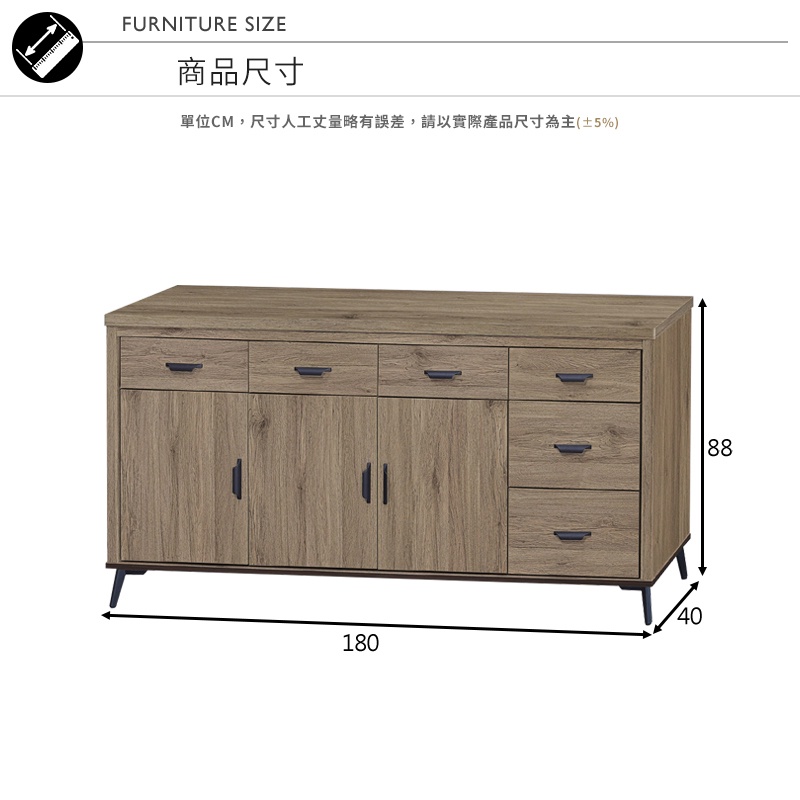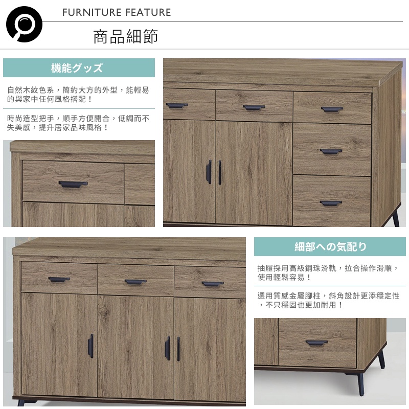 Boden-瓦登6尺工業風灰橡色收納餐櫃/碗盤櫃/置物矮櫃(下座)
