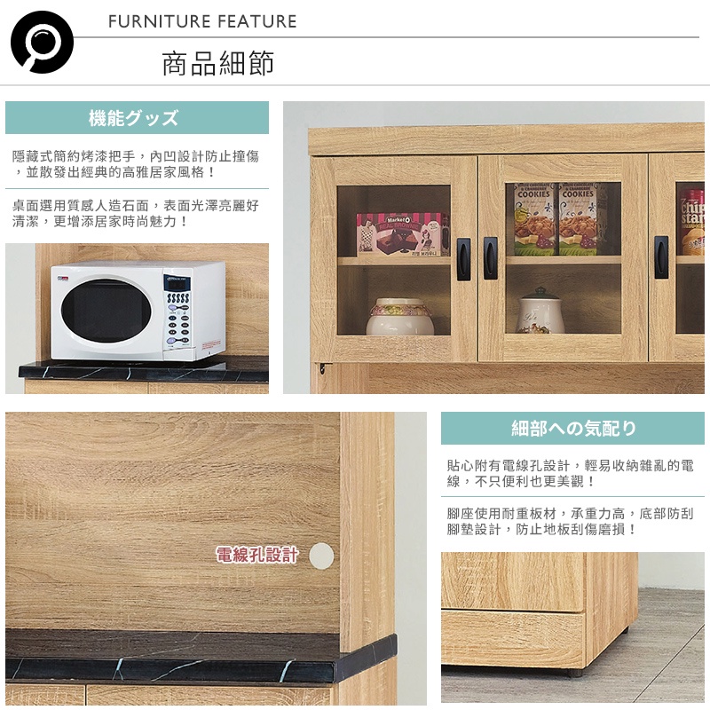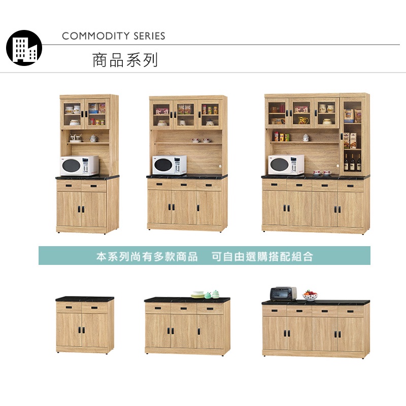 Boden-薩洛4尺黑色石面收納高餐櫃/碗盤櫃/電器櫃(上座+下座)