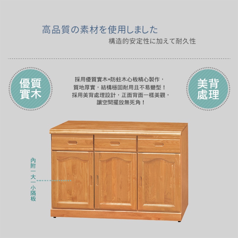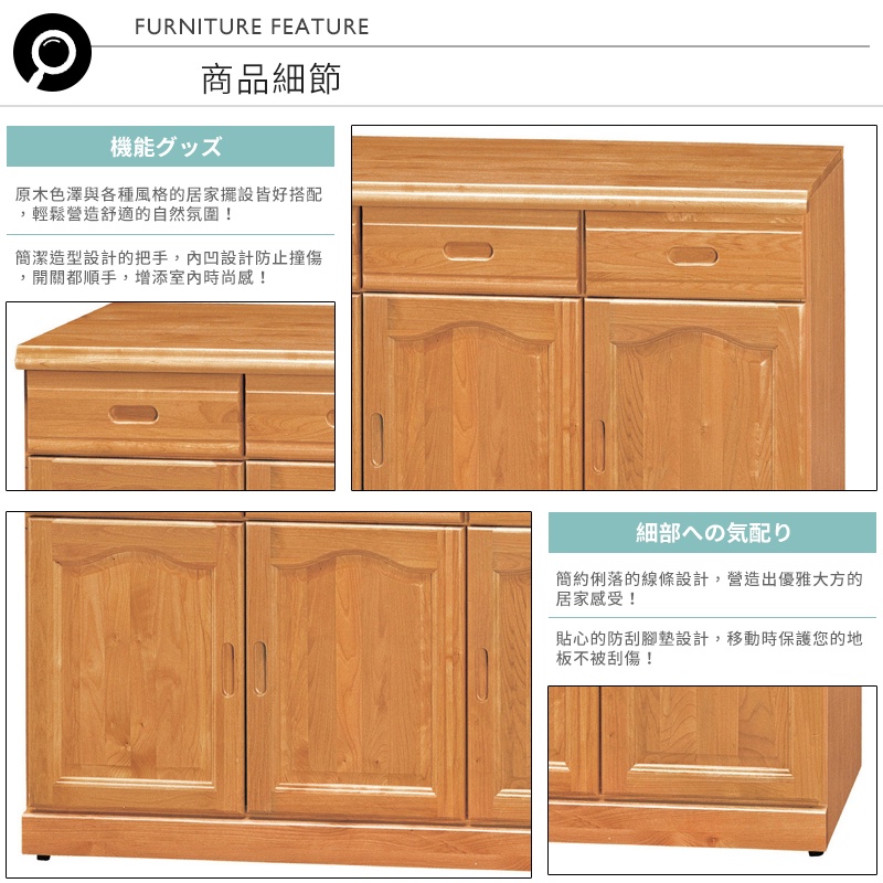 Boden-羅根4尺收納餐櫃/碗盤櫃/三抽三門置物矮櫃
