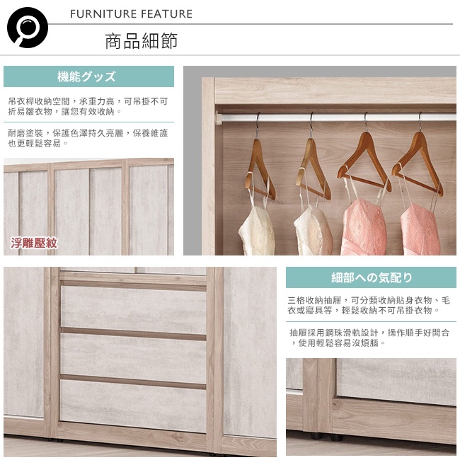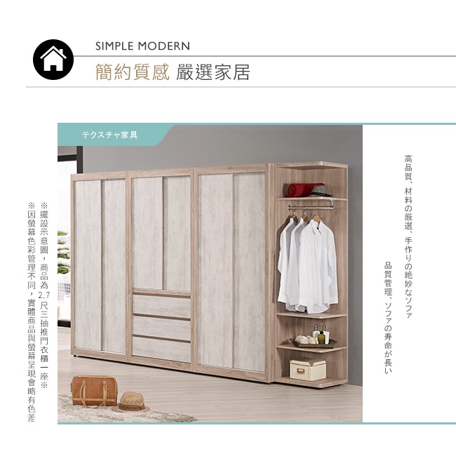 Boden-哈佐2.7尺三抽推門/拉門衣櫃(單吊桿)