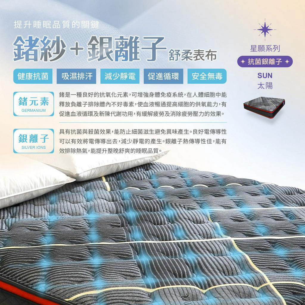 Boden-星願系列-太陽Sun 鍺紗抗菌銀離子四線獨立筒單人/雙人床墊-3.5尺/5尺/6尺/6x7尺