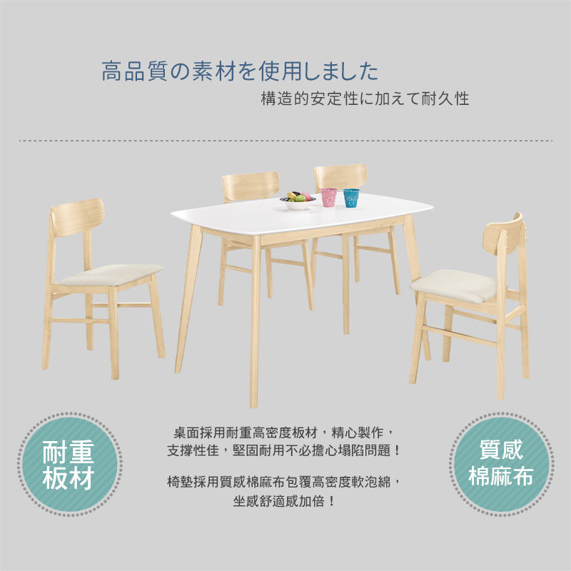 Boden-諾維雅4尺白色餐桌椅+費耶布面實木餐椅組合(一桌四椅)